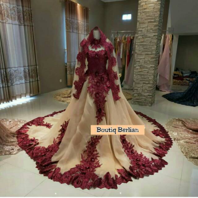 Jual Gaun Pengantin Syar I Modern Mocca Maroon Wedding Dress New Model Indonesia Shopee Indonesia